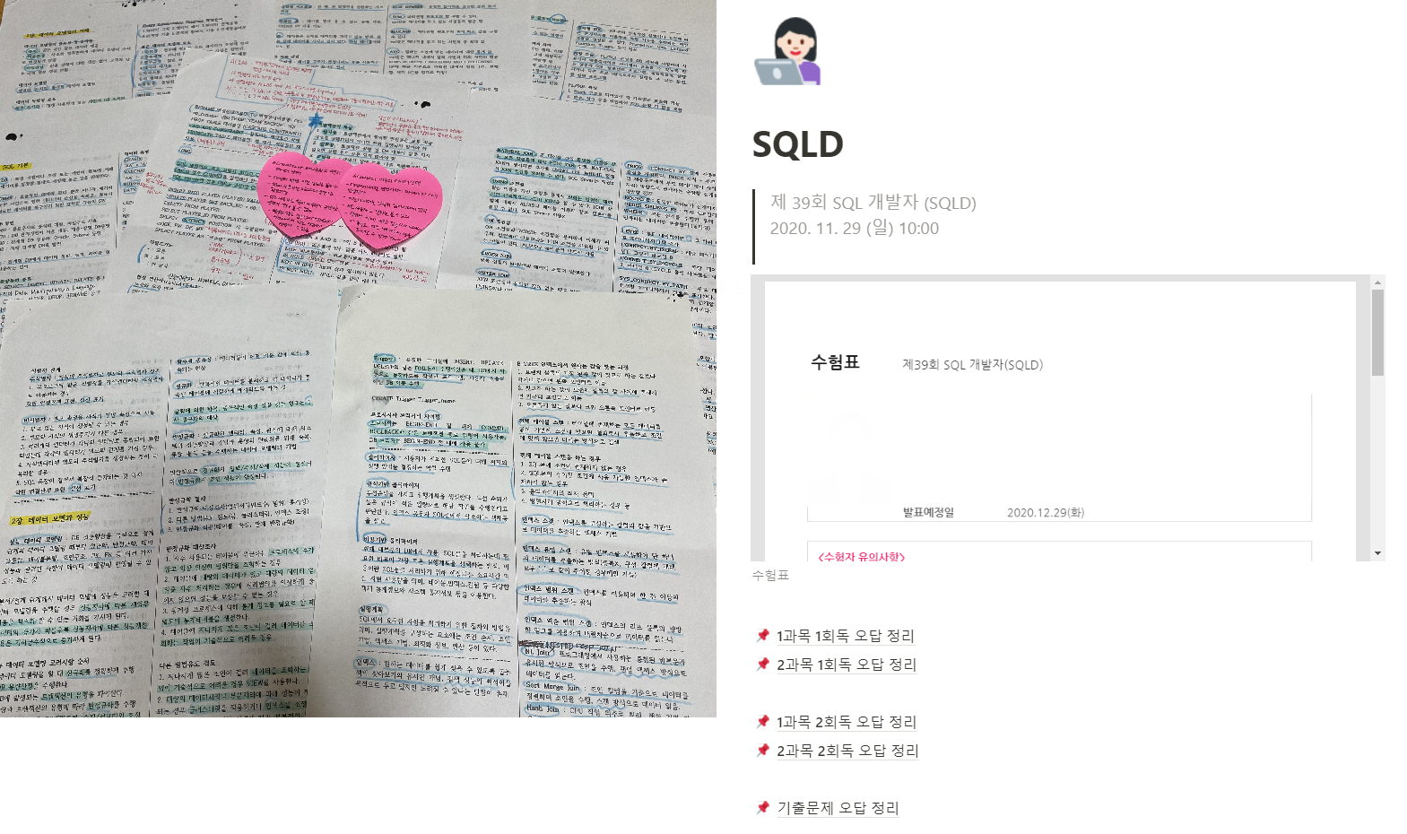 2020년 11월 29일에 진행된 제39회 SQL 개발자 (SQLD)